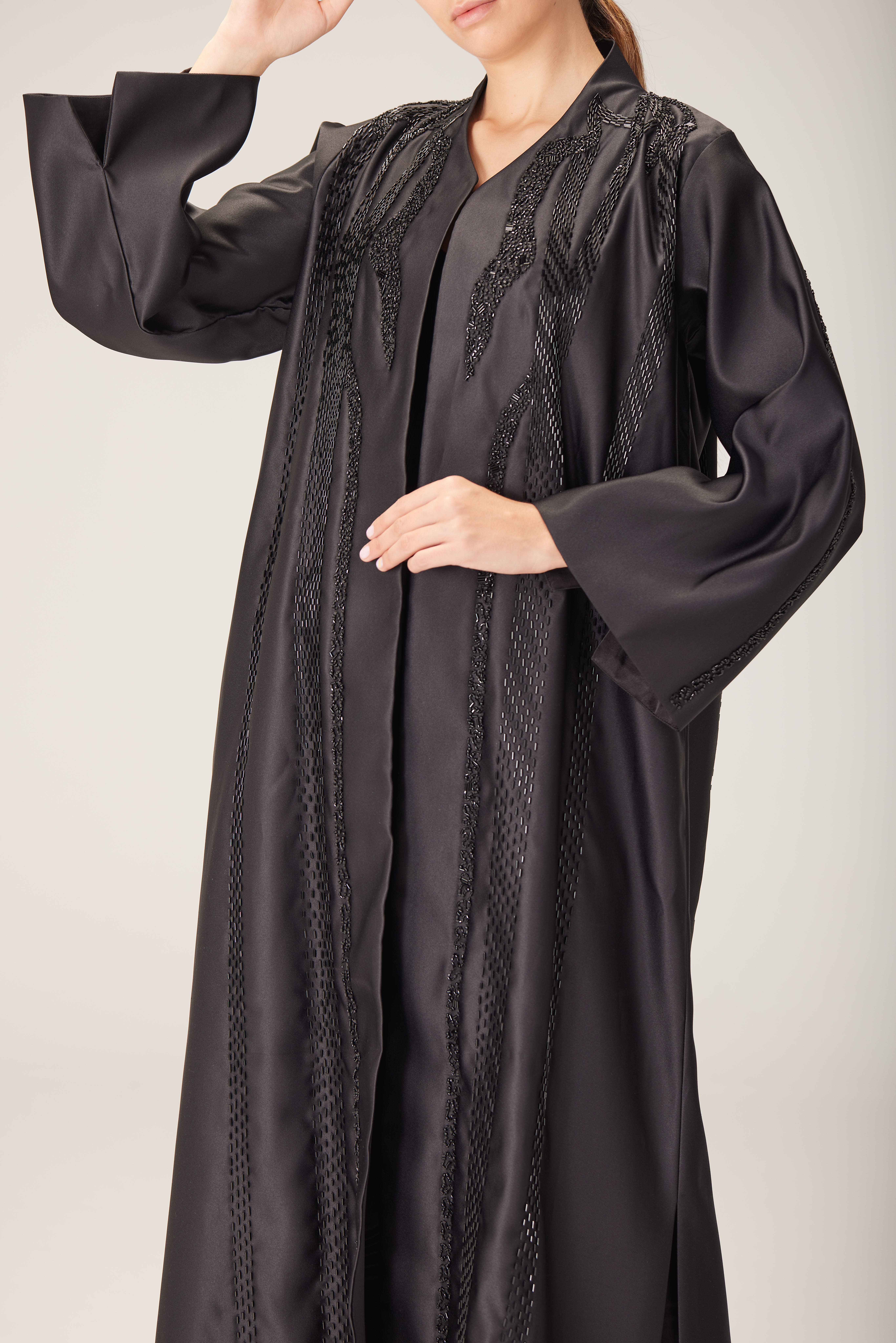 This project illustrates the synergy between art and fashion, highlighting the intricate handcrafted details and the beautiful craftsmanship they yield. Visit @blacksilk_abayas to find out more about the project.